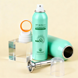 בקבוק אלומיניום בגודל וצבע בהתאמה אישית לריסוס קרם הגנה נוזלי, פחית אירוסול מתכתית עם טבעת טבעתית ופייה לטיפוח העור
