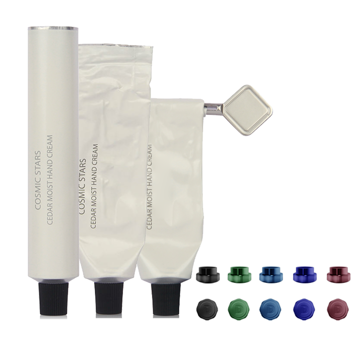 أنابيب معدنية فارغة مخصصة لتعبئة كريمات العناية باليد قابلة للضغط أنابيب مستحضرات تجميل معجون أسنان واقية من الشمس ألومنيوم قابلة للطي مع غطاء معدني